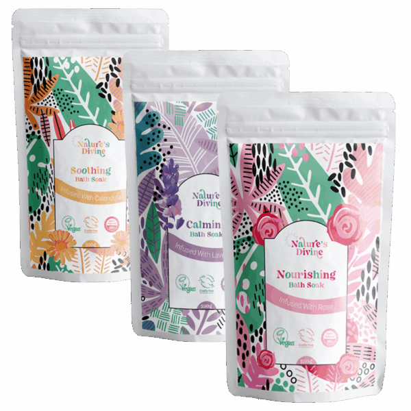 Bring the ultimate soothing and restorative bath experience to your family with the Nature’s Divine Bath Salt Trio Bundle. This carefully curated set includes our Soothing Calendula, Nourishing Rose, and Calming Lavender Bath Salt Pouches — crafted with 100% natural, hypoallergenic ingredients and naturally infused for gentle, effective care. Perfect for all ages, from newborns to adults, these bath salts offer a luxurious, calming soak that nourishes both skin and spirit.