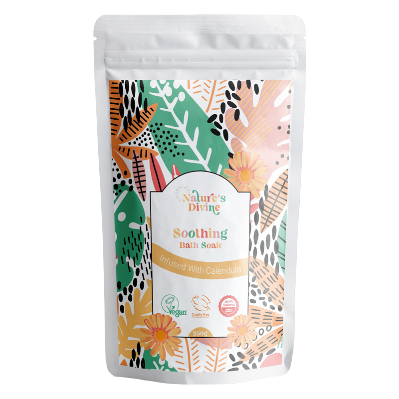Transform bath time into a moment of gentle care and restorative calm with the Nature’s Divine Soothing Calendula Bath Salt Pouch. Crafted for all ages, this 250g sachet blends all-natural mineral salts with the healing essence of calendula, naturally infused to provide soothing benefits without added fragrance, making it hypoallergenic and gentle on sensitive skin.
